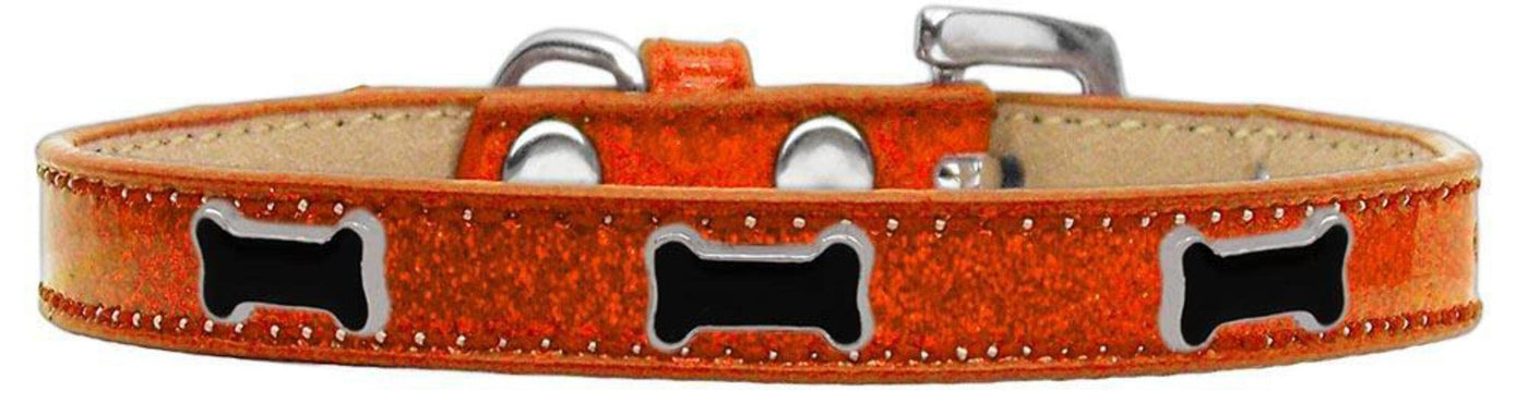 Mirage Pet Products Black Bone Widget Dog Collar Orange Ice Cream, Size 12