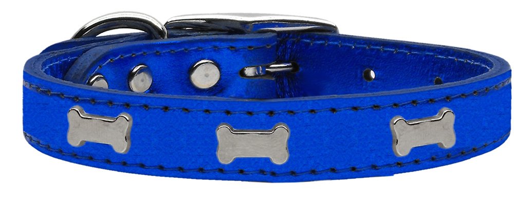Mirage Pet Products Bone Widget Genuine Metallic Leather Dog Collar, Size 12, Blue/Silver