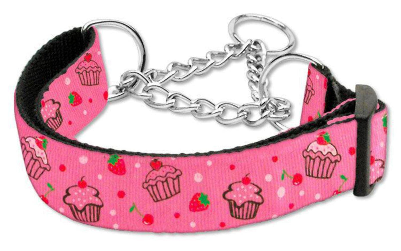 Mirage Pet Products Cupcakes Nylon Ribbon Martingale Collar for Pets, Medium, White