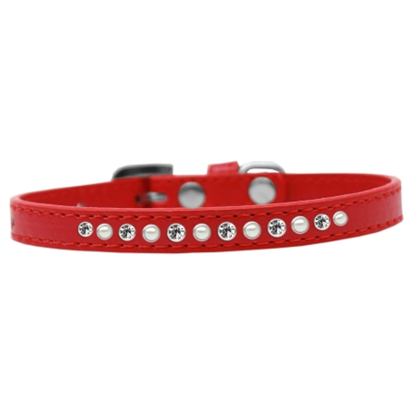 Mirage Pet Products Pearl and Clear Crystal Red Puppy Dog Collar, Size 8