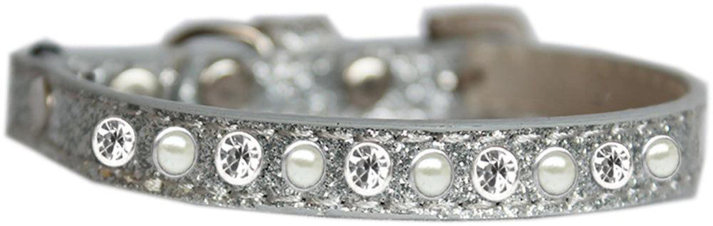 Mirage Pet Products Pearl and Clear Jewel Ice Cream Cat Safety Collar Silver Size 12