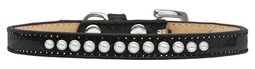 Mirage Pet Products Pearl Black Puppy Dog Ice cream collar Size 12. 38 wide collar adorned with 1 row of pearls and a rhinestone buckle. Fits a neck size from 8-10. Made in the USA.