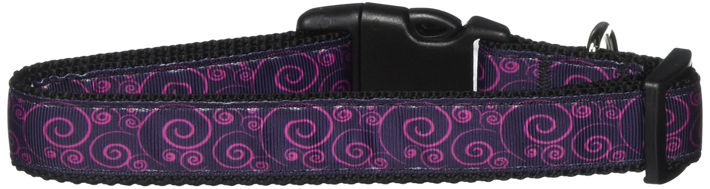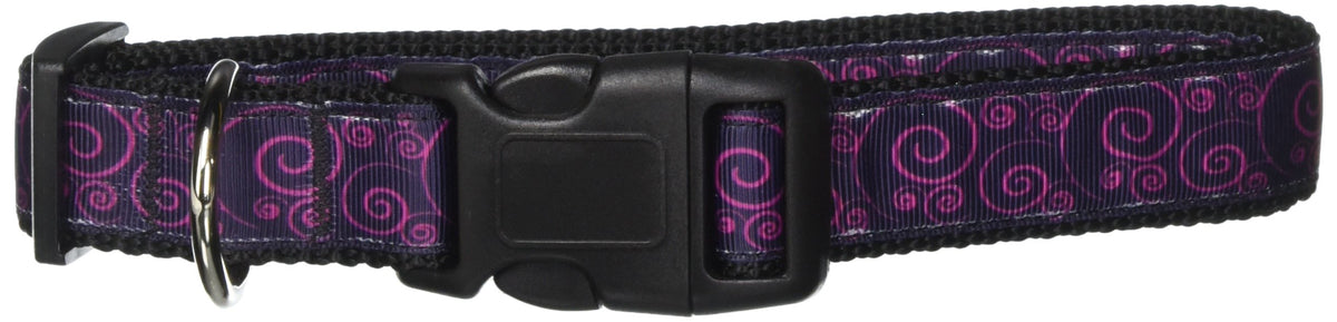 Mirage Pet Products Pink/Black Swirly Nylon Ribbon Dog Collar, Large, Pink/Black