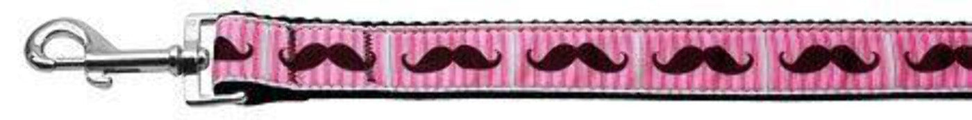Mirage Pet Products Pink Striped Moustache Ribbon Dog Collar with 1-Inch by 4-Feet Leash