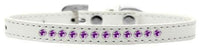 Mirage Pet Products Purple Crystal White Puppy Dog Collar Size 10. 3/8'' Wide Collar Adorned With 1 Row Of Rhinestones And A Rhinestone Buckle. Fits A Neck Size From 6-8''. Made In The Usa.