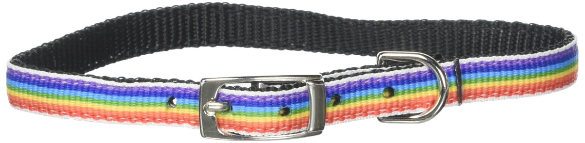 Mirage Pet Products Rainbow Striped 3/8" Nylon Dog Collar with Classic Buckle, Size 14, Rainbow Stripes