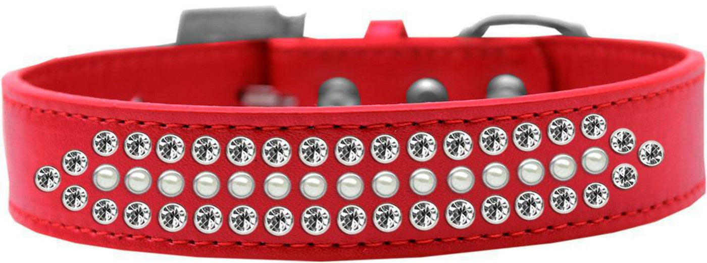 One Row Of Pearls Surrounded By Two Rows Of Gorgeous Crystals Make The Ultimate Fashion Statement For Your Dog! These Are 1'' Wide Collars With A Crystal Buckle And Three Handset Rows Of Pearls And Crystals.