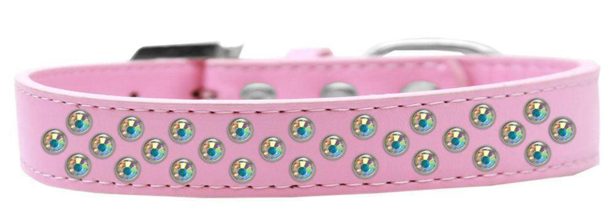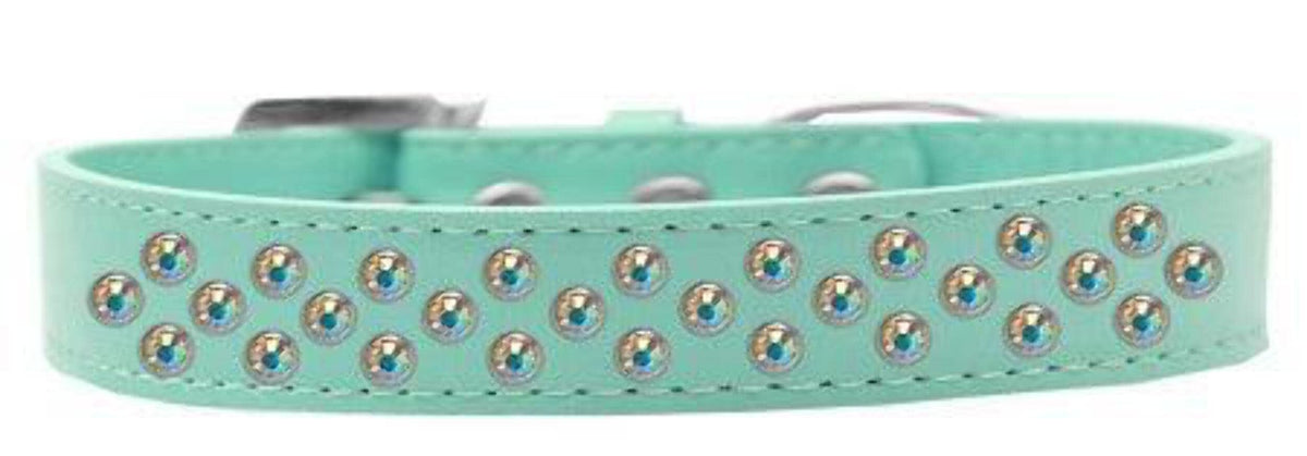 Sprinkles Dog Collar Ab Crystals Size 18 Aqua. 3/4'' Wide Collar Adorned With 2 Sprinkled Rows Of Rhinestones And A Rhinestone Buckle.. Made In The Usa. Fits A Neck Size From 14-16''.