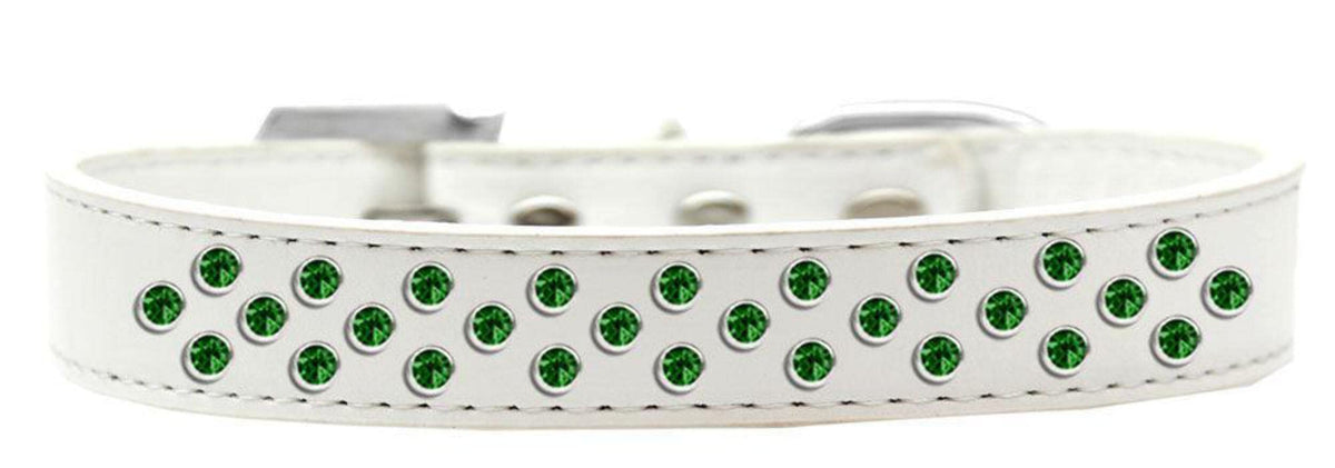 Sprinkles Dog Collar Emerald Green Crystals Size 20 Black. 3/4'' Wide Collar Adorned With 2 Sprinkled Rows Of Rhinestones And A Rhinestone Buckle.. Made In The Usa. Fits A Neck Size From 16-18''.