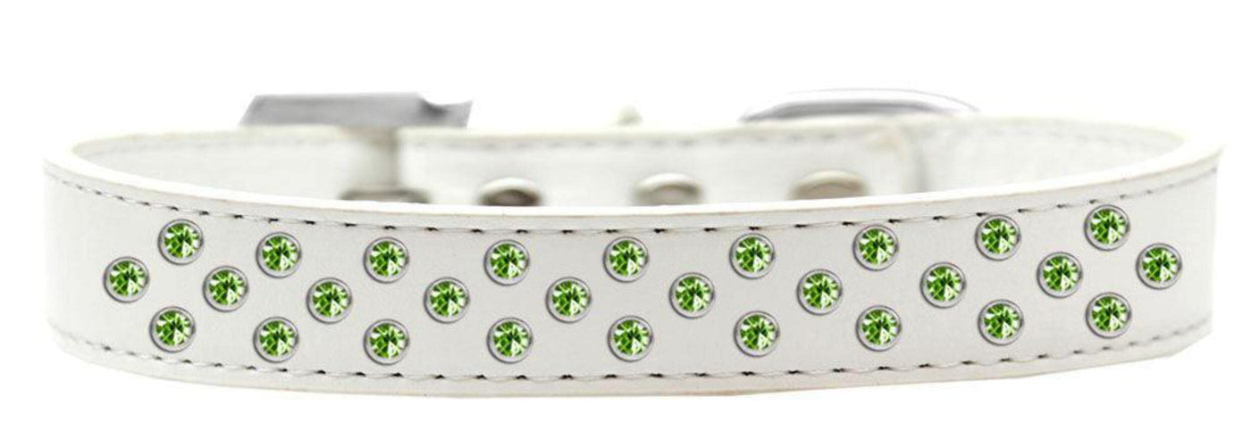 Q: What sizes does the Lime Green Crystal Sprinkles Dog Collar come in?A: The Lime Green Crystal Sprinkles Dog Collar is available in Size 12, which fits neck sizes from 8 to 10 inches.