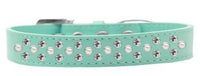 Sprinkles Dog Collar Pearl And Clear Crystals Size 14 Aqua. 3/4'' Wide Collar Adorned With 2 Sprinkled Rows Of Rhinestones And A Rhinestone Buckle.. Made In The Usa. Fits A Neck Size From 10-12''.