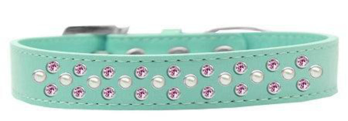 Sprinkles Dog Collar Pearl And Light Pink Crystals Size 14 White. 3/4'' Wide Collar Adorned With 2 Sprinkled Rows Of Rhinestones And A Rhinestone Buckle.. Made In The Usa. Fits A Neck Size From 10-12''.