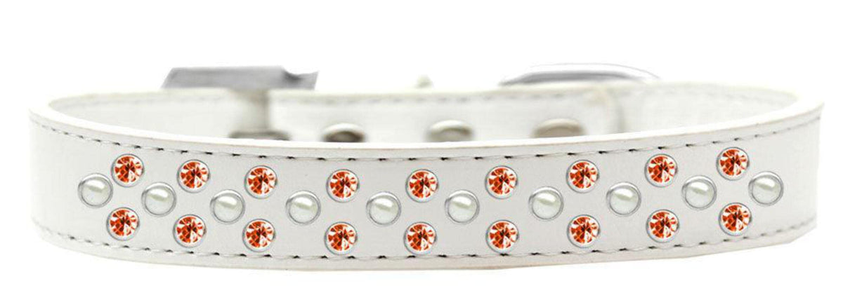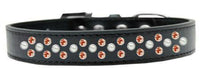 Sprinkles Dog Collar Pearl And Orange Crystals Size 14 Black. 3/4'' Wide Collar Adorned With 2 Sprinkled Rows Of Rhinestones And A Rhinestone Buckle.. Made In The Usa. Fits A Neck Size From 10-12''.