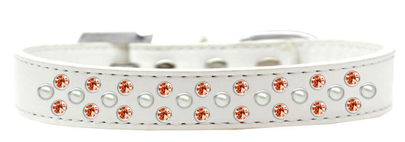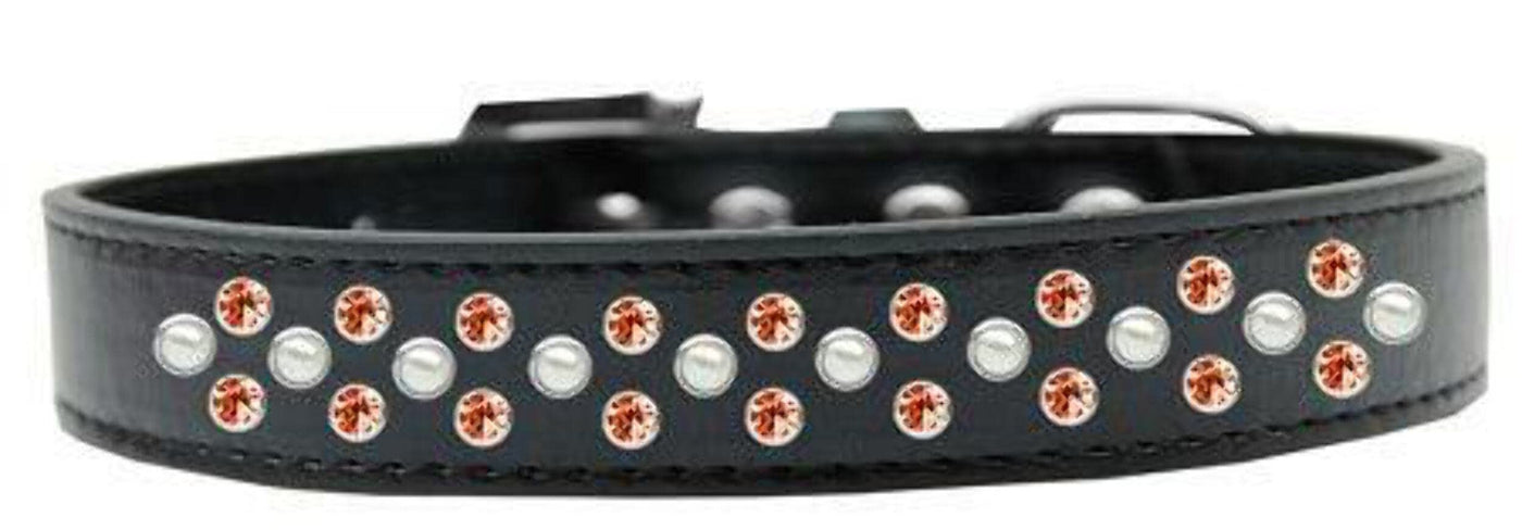 Sprinkles Dog Collar Pearl And Orange Crystals Size 20 Black. 3/4'' Wide Collar Adorned With 2 Sprinkled Rows Of Rhinestones And A Rhinestone Buckle.. Made In The Usa. Fits A Neck Size From 16-18''.