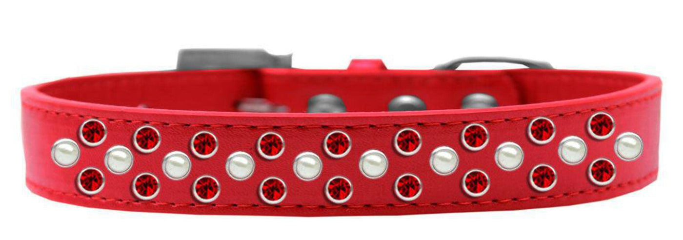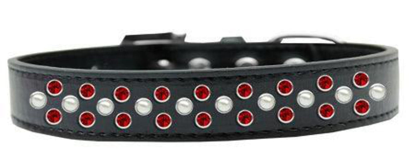 Sprinkles Dog Collar Pearl And Red Crystals Size 18 Black. 3/4'' Wide Collar Adorned With 2 Sprinkled Rows Of Rhinestones And A Rhinestone Buckle.. Made In The Usa. Fits A Neck Size From 14-16''.