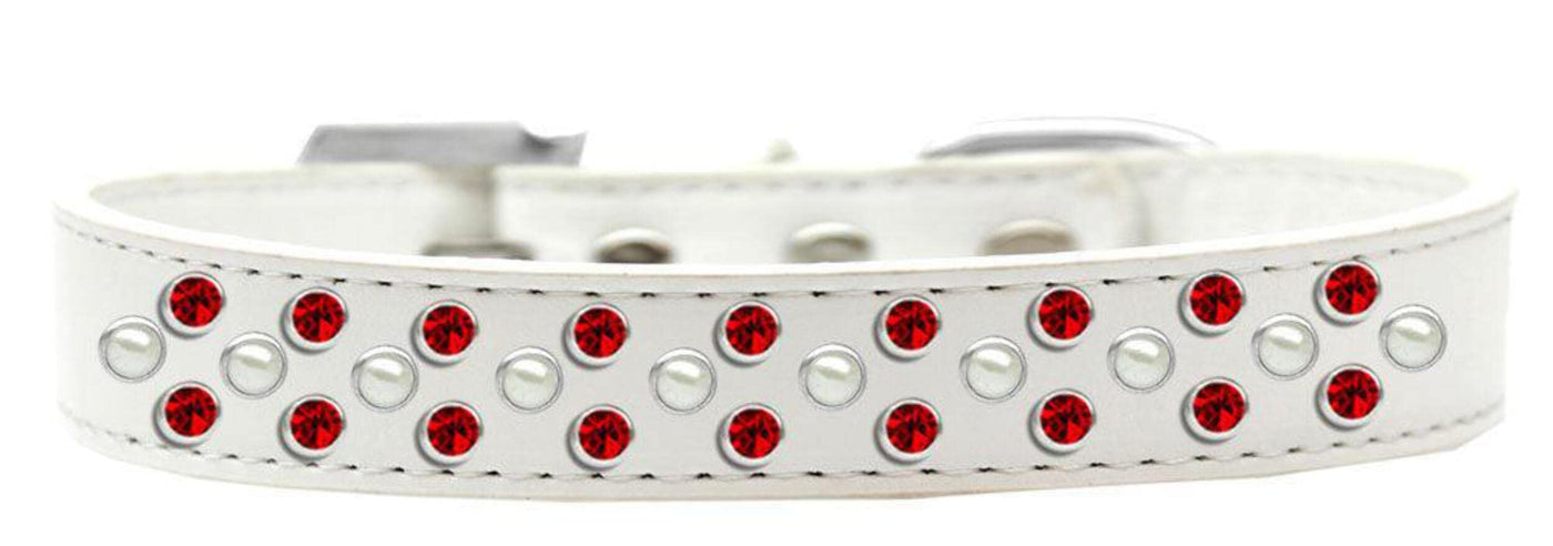 Sprinkles Dog Collar Pearl And Red Crystals Size 18 Red. 3/4'' Wide Collar Adorned With 2 Sprinkled Rows Of Rhinestones And A Rhinestone Buckle.. Made In The Usa. Fits A Neck Size From 14-16''.