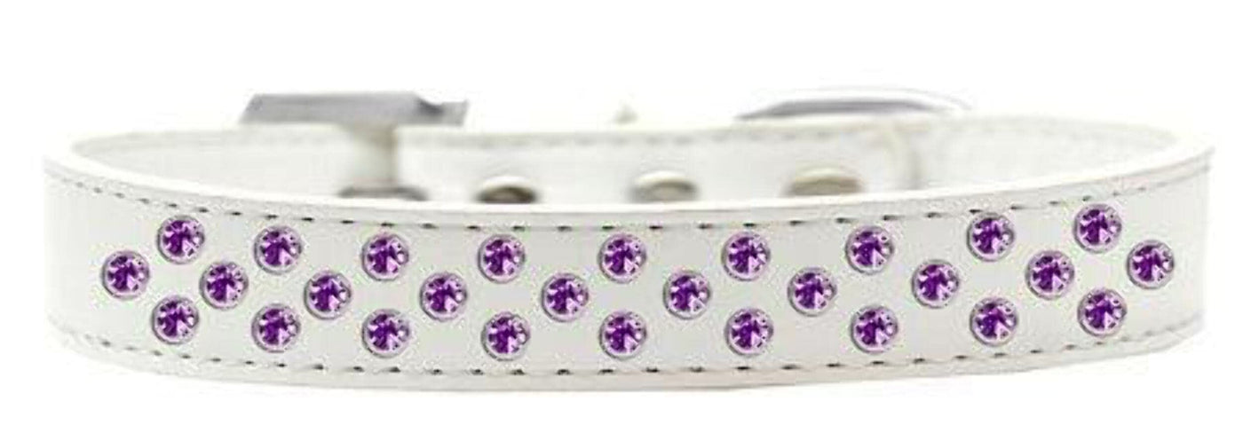 Sprinkles Dog Collar Purple Crystals Size 14 White. 3/4'' Wide Collar Adorned With 2 Sprinkled Rows Of Rhinestones And A Rhinestone Buckle.. Made In The Usa. Fits A Neck Size From 10-12''.
