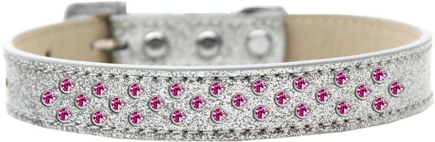 Q: What size dog does the Bright Pink Crystal Sprinkles Rimsets collar fit?A: The Bright Pink Crystal Sprinkles Rimsets collar is designed to fit dogs with a neck size from 12 to 14 inches, making it suitable for small to medium-sized breeds.