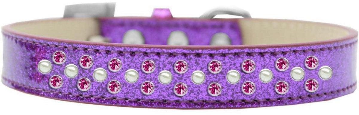 Q: What sizes does the Pearl and Bright Pink Crystal Rimsets Sprinkles Dog Collar come in?A: The Pearl and Bright Pink Crystal Rimsets Sprinkles Dog Collar is available in Size 12, which fits neck sizes from 8 to 10 inches.