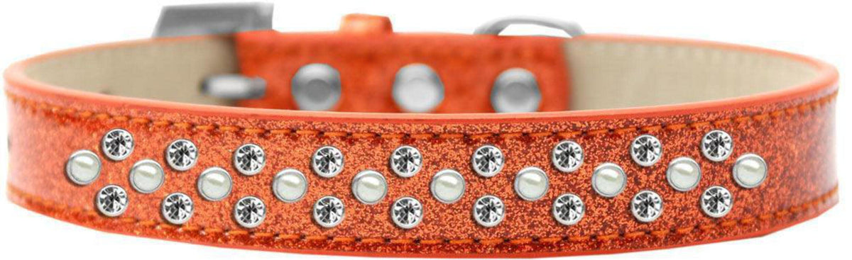 Sprinkles Ice Cream Dog Collar Pearl And Clear Crystals Size 18 Orange. 3/4'' Wide Collar Adorned With 2 Sprinkled Rows Of Rhinestones And A Rhinestone Buckle.. Made In The Usa. Fits A Neck Size From 14-16''.
