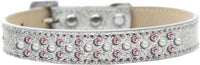 Sprinkles Ice Cream Dog Collar Pearl And Light Pink Crystals Size 18 Silver. 3/4'' Wide Collar Adorned With 2 Sprinkled Rows Of Rhinestones And A Rhinestone Buckle.. Made In The Usa. Fits A Neck Size From 14-16''.