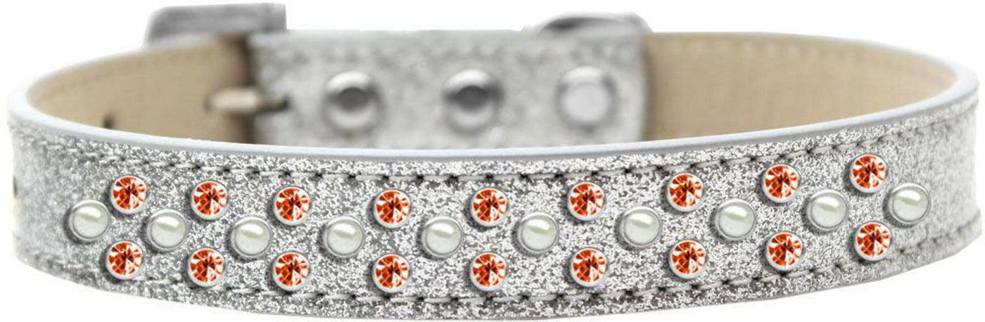 Sprinkles Ice Cream Dog Collar Pearl And Orange Crystals Size 20 Purple. 3/4'' Wide Collar Adorned With 2 Sprinkled Rows Of Rhinestones And A Rhinestone Buckle.. Made In The Usa. Fits A Neck Size From 16-18''.