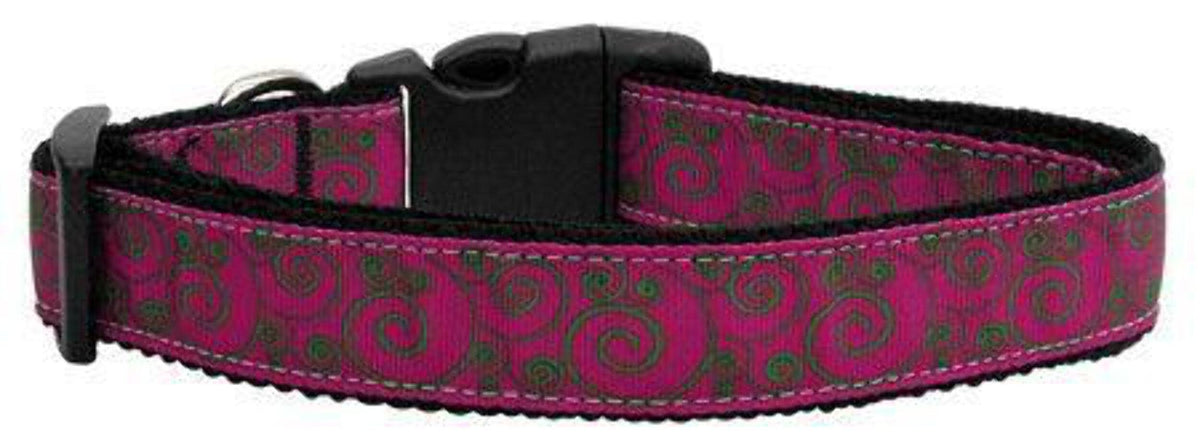 Mirage Pet Products Swirly Nylon Ribbon Dog Collar, Large, Pink/Lime