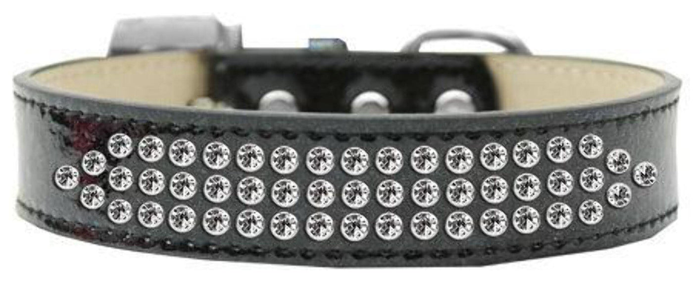 Three rows of gorgeous clear crystals on a glittery collar with a PVC coating to help prevent absorption of odors and add durability is completed with a crystal buckle for the ultimate in pet bling!.