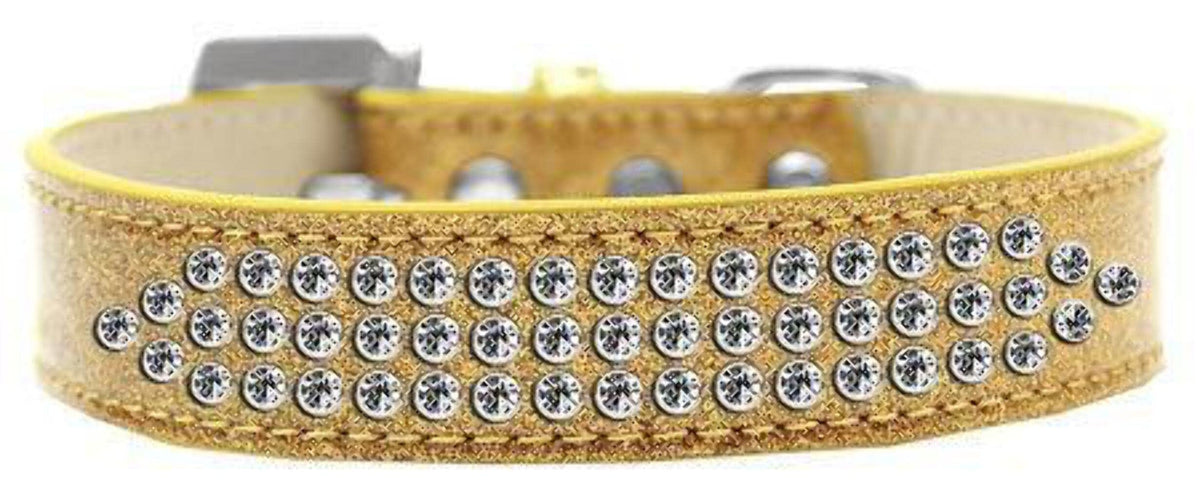 Three rows of gorgeous clear crystals on a glittery collar with a PVC coating to help prevent absorption of odors and add durability is completed with a crystal buckle for the ultimate in pet bling!.