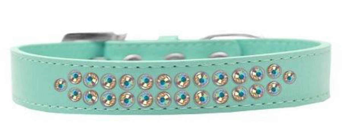 Mirage Pet Products Two Row Ab Crystal Aqua Dog Collar Size 14. 3/4'' Wide Collar Adorned With 2 Rows Of Rhinestones And A Rhinestone Buckle. Fits A Neck Size From 10-12''. Made In The Usa.
