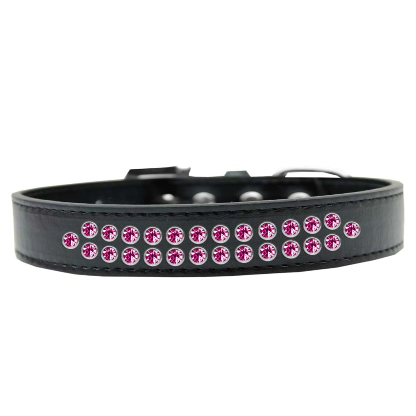 Mirage Pet Products Two Row Bright Pink Crystal Black Dog Collar, Size 20