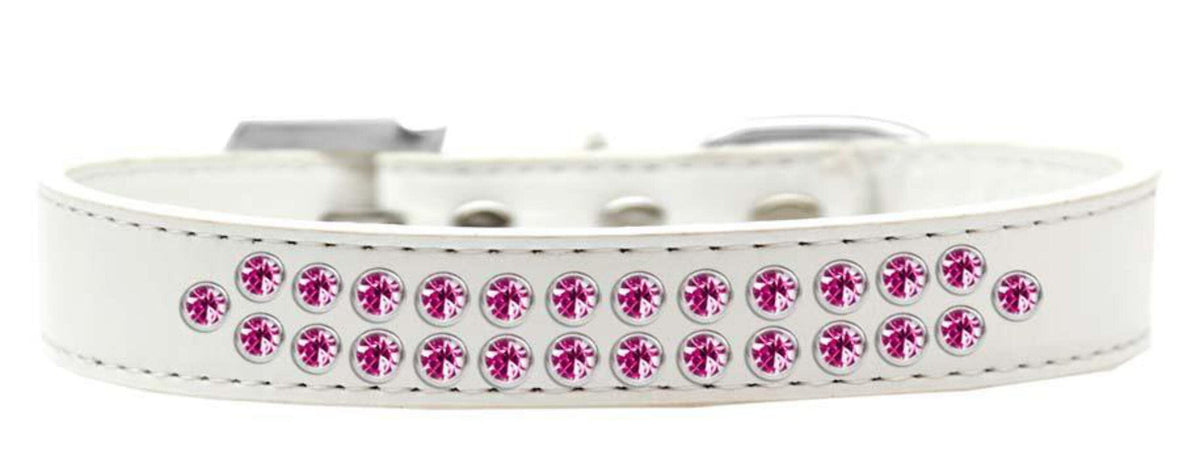 Mirage Pet Products Two Row Bright Pink Crystal White Dog Collar, Size 20