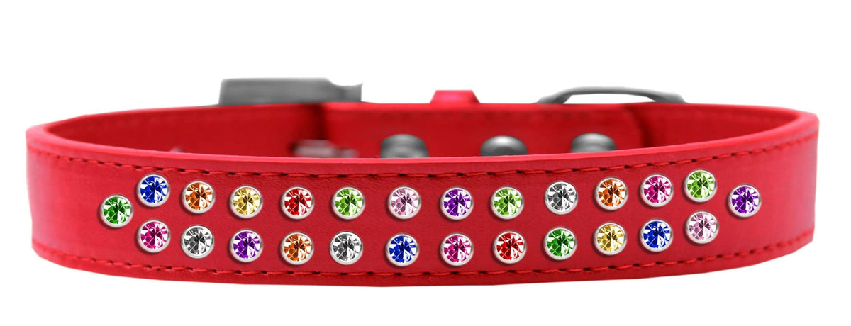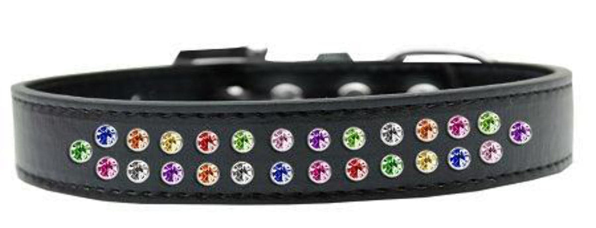 Mirage Pet Products Two Row Confetti Crystal White Dog Collar Size 12. 3/4'' Wide Collar Adorned With 2 Rows Of Rhinestones And A Rhinestone Buckle. Fits A Neck Size From 8-10''. Made In The Usa.