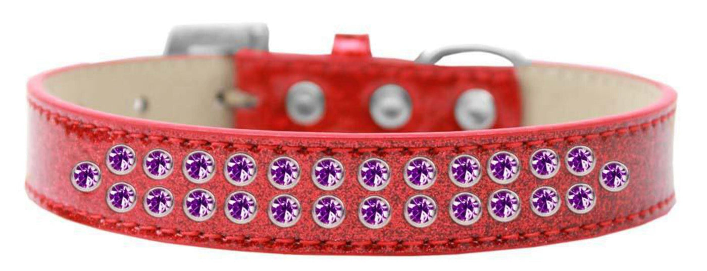 Two Row Purple Crystal Size 12 Purple Ice Cream Dog Collar. 3/4'' Wide Collar Adorned With 2 Rows Of Rhinestones And A Rhinestone Buckle.. Made In The Usa. Fits A Neck Size From 8-10''.