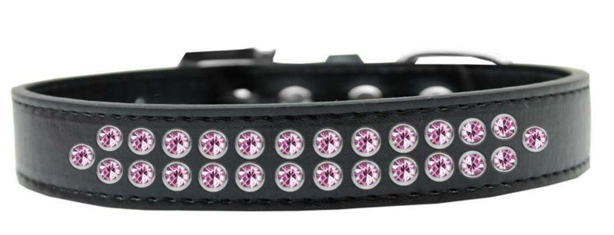 Mirage Pet Products Two Row Light Pink Crystal Black Dog Collar Size 14. 3/4'' Wide Collar Adorned With 2 Rows Of Rhinestones And A Rhinestone Buckle. Fits A Neck Size From 10-12''. Made In The Usa.