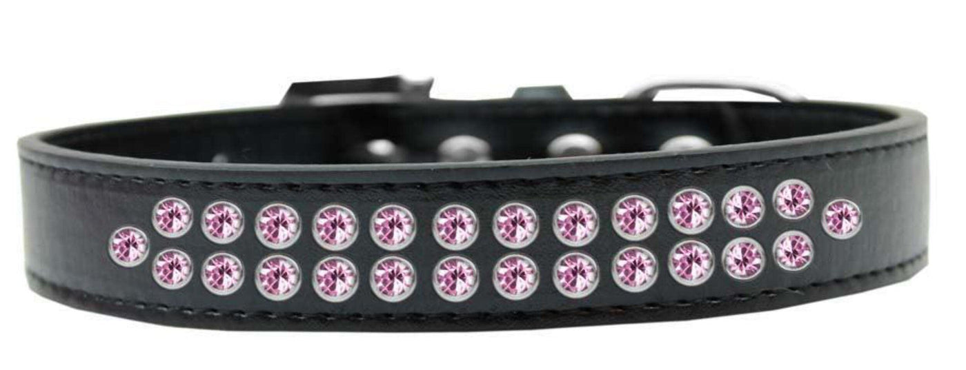 Mirage Pet Products Two Row Light Pink Crystal Black Dog Collar Size 20. 3/4'' Wide Collar Adorned With 2 Rows Of Rhinestones And A Rhinestone Buckle. Fits A Neck Size From 16-18''. Made In The Usa.