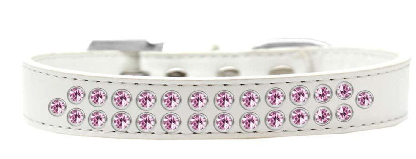 Mirage Pet Products Two Row Light Pink Crystal White Dog Collar Size 16. 3/4'' Wide Collar Adorned With 2 Rows Of Rhinestones And A Rhinestone Buckle. Fits A Neck Size From 12-14''. Made In The Usa.