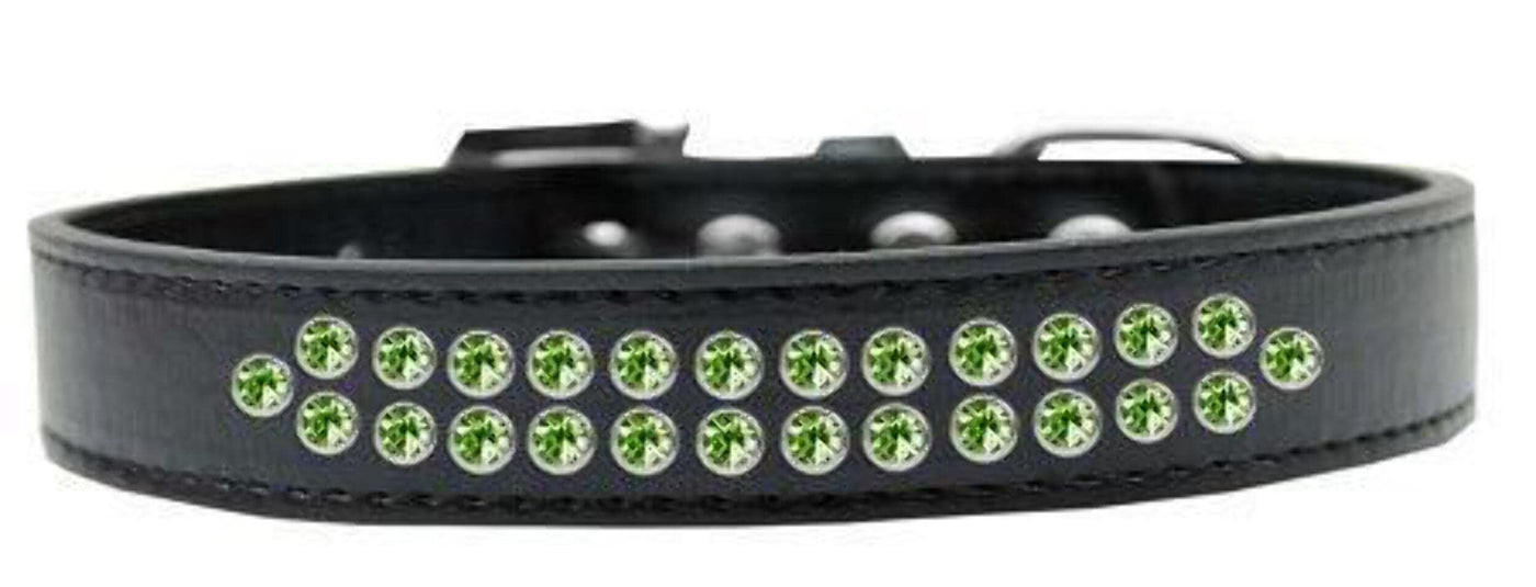 Mirage Pet Products Two Row Lime Green Crystal Black Dog Collar Size 14. 3/4'' Wide Collar Adorned With 2 Rows Of Rhinestones And A Rhinestone Buckle. Fits A Neck Size From 10-12''. Made In The Usa.