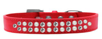 Mirage Pet Products Two Row Pearl and Clear Crystal Red Dog Collar, Size 20
