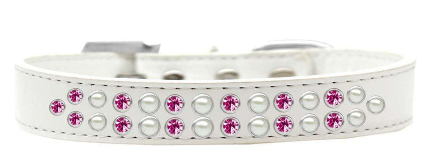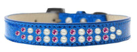 Mirage Pet Products Two Row Pearl and Pink Crystal Ice Cream Dog Collar, Size 16, Blue
