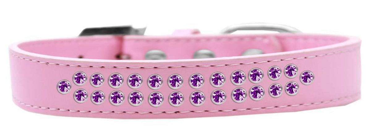 Mirage Pet Products Two Row Purple Crystal Light Pink Dog Collar Size 18. 3/4'' Wide Collar Adorned With 2 Rows Of Rhinestones And A Rhinestone Buckle. Fits A Neck Size From 14-16''. Made In The Usa.