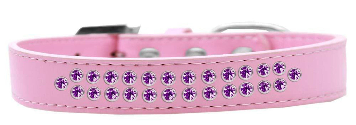 Mirage Pet Products Two Row Purple Crystal Light Pink Dog Collar Size 20. 3/4'' Wide Collar Adorned With 2 Rows Of Rhinestones And A Rhinestone Buckle. Fits A Neck Size From 16-18''. Made In The Usa.