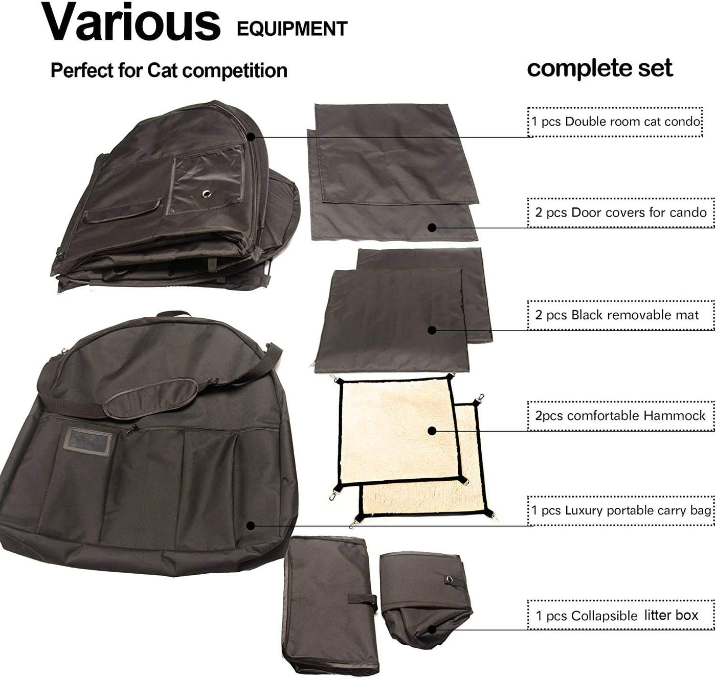 Mispace Portable Twin Compartment Show House Cat Cage Condo,Comfy Puppy Home Dog Travel Crate with Carry Bag/2 Hammocks/Mats & C