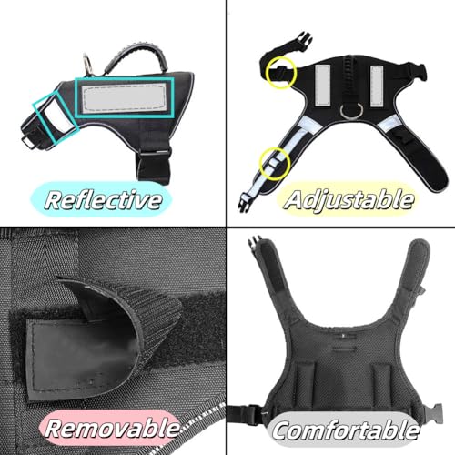 Misthis No Pull Service Dog Vest Harness (L) With Soft Handle And Reflective Stripe For Service Dogs Adjustable Padded Vest With Removable Reflective Patches For Small Medium Large Dogs