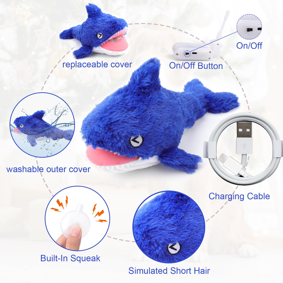 Mity Rain 2 In 1 Interactive Dog Toys, Shark Dog Toy To Keep Them Busy, Plush Squeaky Dog Toys, Rechargeable Wiggly Fish Blue Do