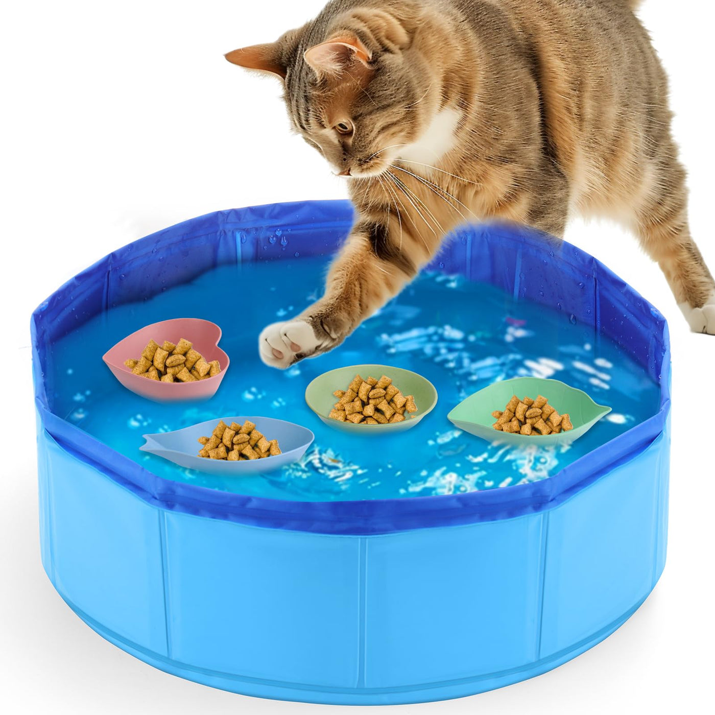 Mity Rain Cat Pool Toy - With Funny Water Toy Moving Treat Bowl, Interactive Cat Toy For Bored Indoor Cats To Play, Hunt & Stay