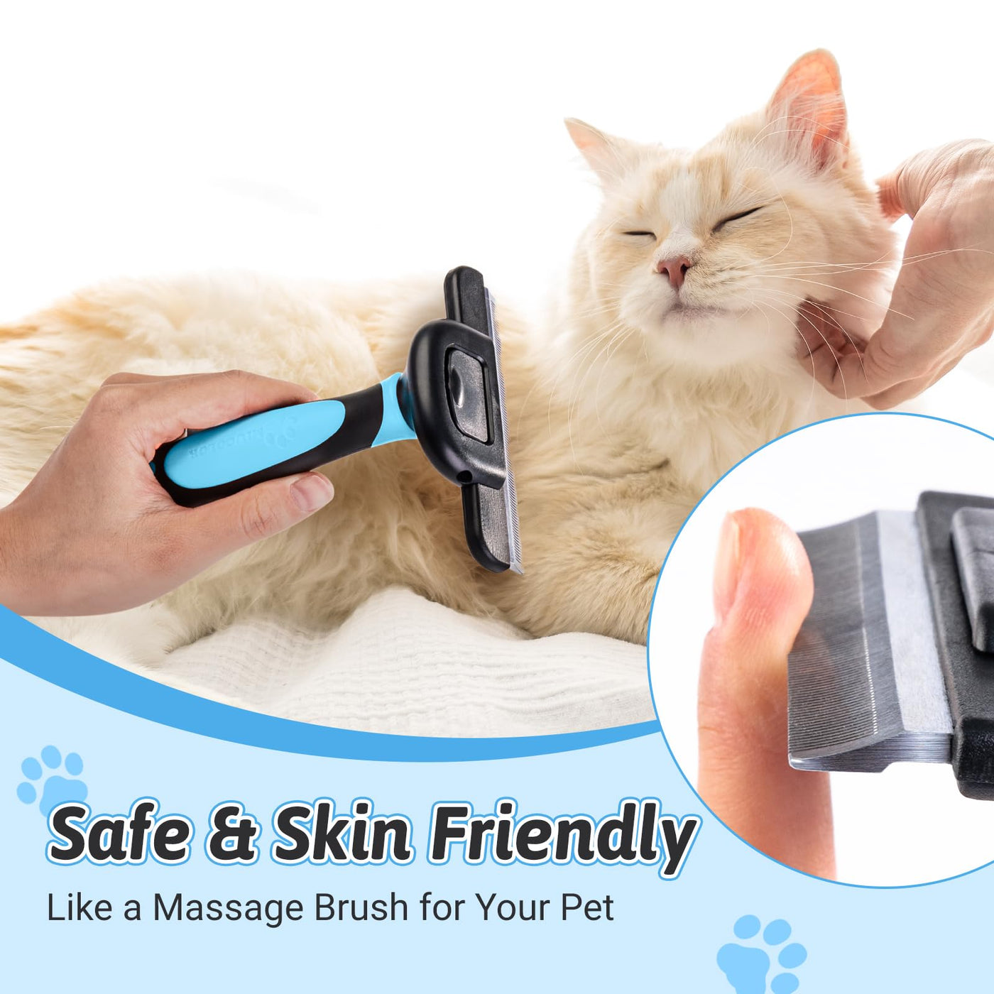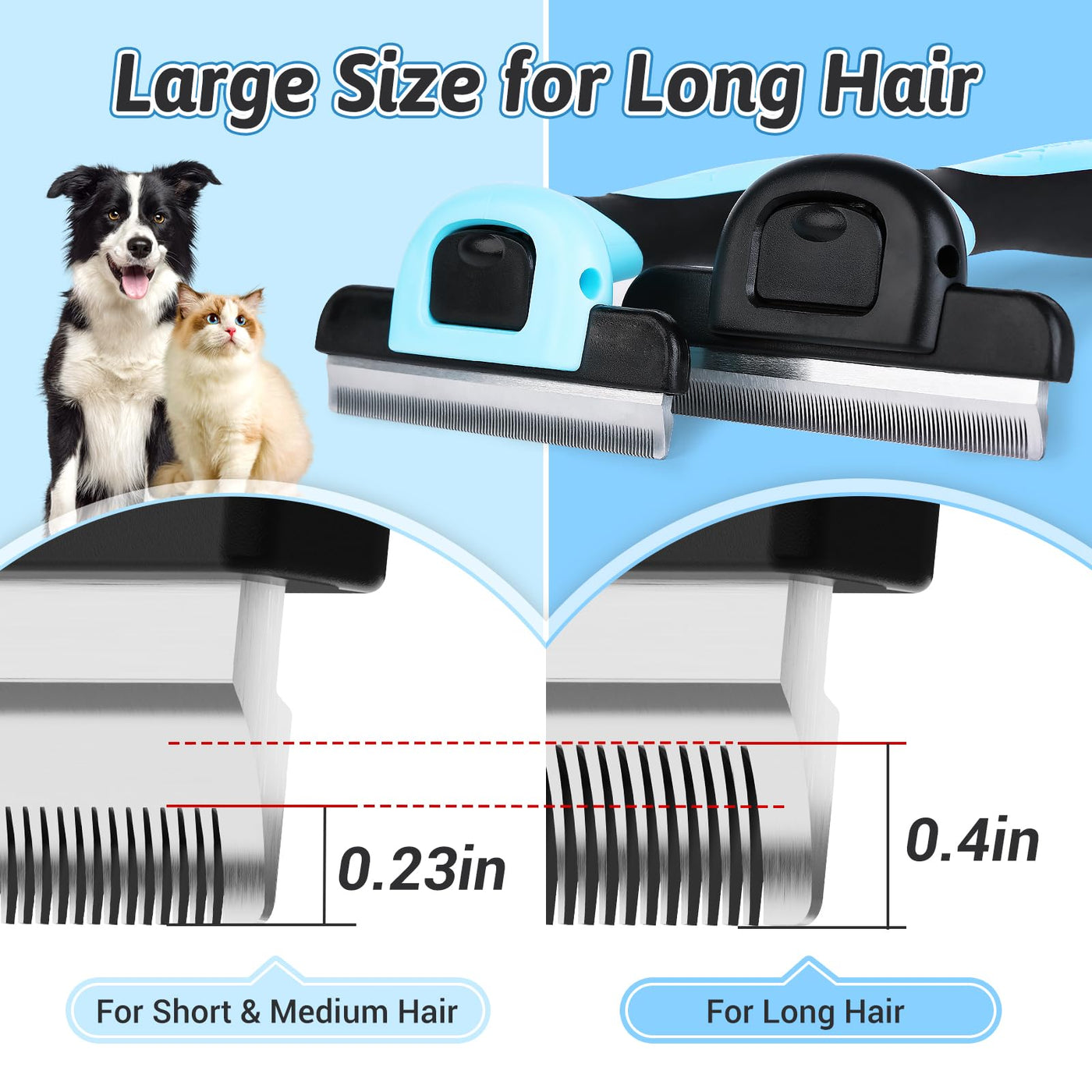 Long Pet Hair Remover Deshedder: MIU cOLOR Pet grooming Brush effectively reduces shedding by up to 95% Its an ideal pet grooming tool and dog brush hair brush for de shedding all sizes of cats & dogs-medium and long hair dog comb These shedding brushes free you from annoying hair all over your home or car High-Quality Dog cat grooming comb: Our pet comb has 4-inch stainless combs 035-inch extended teeth designed for long-haired dogs and cats and steel edge with uniformly distributed teeth making it a good grooming comb for large cats and dogs quickly and easily removes loose undercoat hair at the same time effectively comb deeper fur and stimulate the skin blood circulation convenient Top coat Undercoat Brush: Our dog de shedding tool has a detachable comb head that can be effortlessly removed and installed This long hair dog cat brushes for shedding comes with a safe blade cover Our cat hair brush protects the blades and makes the life span longer Safe Dog cat Hair Remover: Our dog cat shedding brush is eco-friendly non-toxic non-polluting and safe to use The ergonomic non-slip handle makes this pet shedding brush durable and strong fits in hand perfectly for deshedding Ideal choice for Pet: MIU cOLOR cat Brush and Dog Brush allow dogs and cats to have a comfortable experience If there is any problem with the pet brush we provide a complete return or refund service