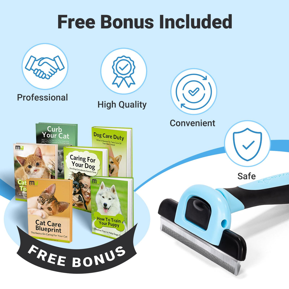 Q: What is the ergonomic design feature of this grooming brush?A: The MIU COLOR Pet Grooming Brush features a comfortable, ergonomic grip handle made from non-slip rubber, providing a secure grasp during grooming sessions and enhancing your overall grooming experience.