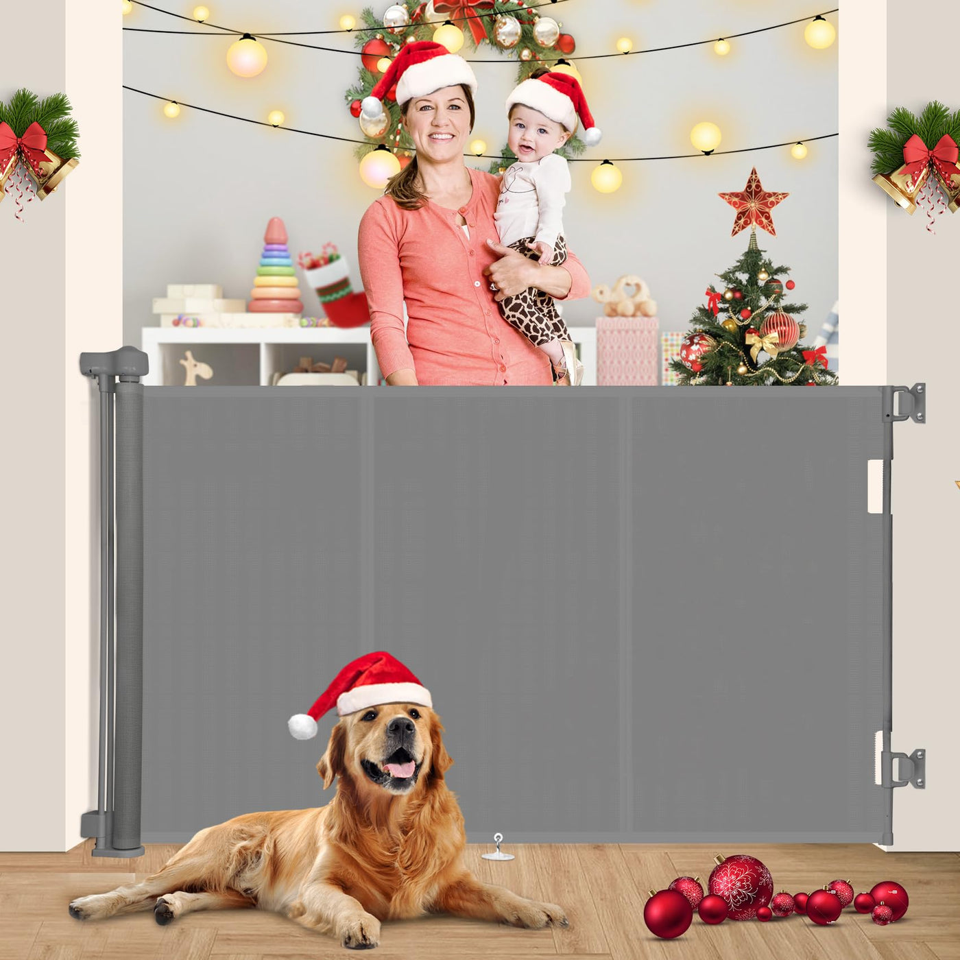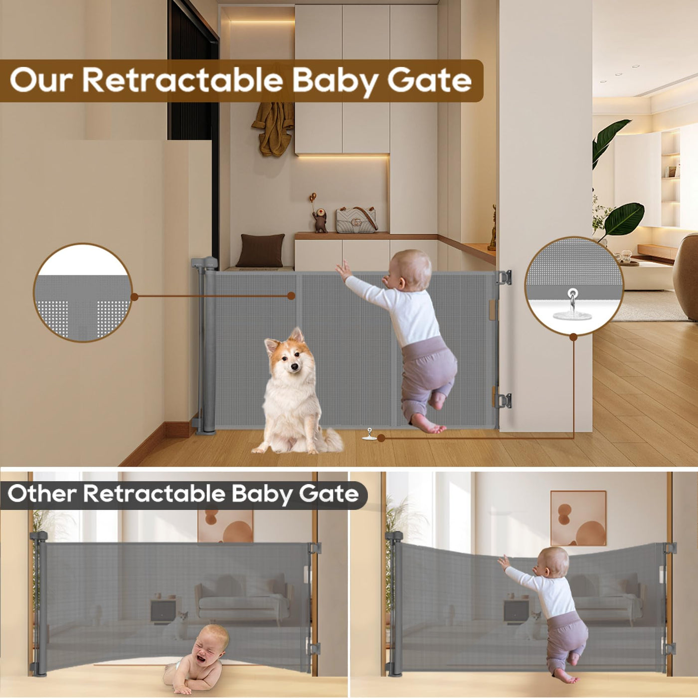 Miumoon Upgrade 71' Retractable Baby Gates With Reinforced Strip Design To Prevent Crawling Through, 42' Tall Retractable Gate For Baby And Pet, 6 Ft Baby Gates For Stairs, Doorways, Hallways(Gray)