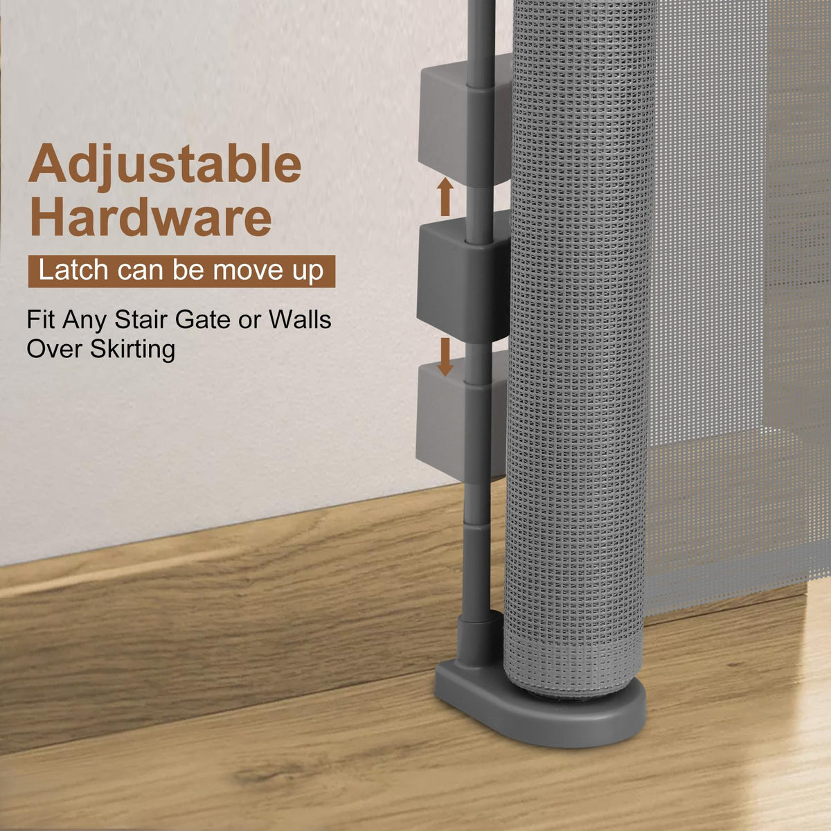 - Q: How easy is it to install the Miumoon retractable baby gate? A: Installation is straightforward with the adjustable lower bracket that fits any baseboard without wall spacers. All necessary tools and instructions are included for quick setup.